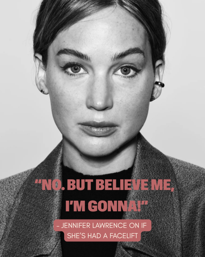 - Jennifer Lawrence’s frank interview with The New Yorker, where she revealed that she gets Botox and fully intends to have both breast augmentation (soon) and a facelift.
