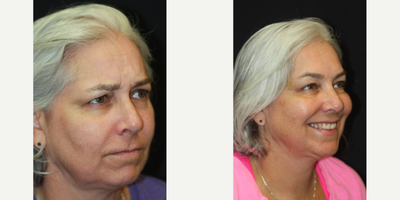 50 year old woman treated with Botox for Migraines - 50 year old woman seeking to address early signs of aging consulted with Dr. Kris Reddy FACS. Dr. Reddy performed Botox about 40 units and dermal fillers (1 syringe of Juvederm Ultra in the nasolabial folds and perioral lines and 1 syringe of Voluma for the lower face and chin area). The dermal fillers softened the nasolabial folds, improved the perioral area, better defined the lip line, and better contoured the chin and lower face. Patient wanted to have Botox performed for cosmetic reasons and to treat migraine headaches.