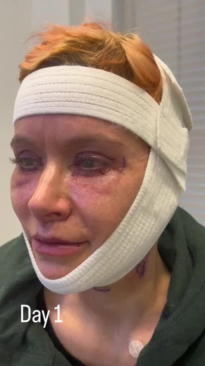 Deep plane facelift, neck lift, brow lift, lip lift, upper and lower blepharoplasty for full face rejuvenation. Patient’s treatment and recovery journey is shown here.
