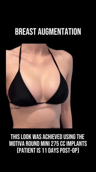 This patient underwent a breast augmentation using Motiva Round Mini Profile 275 cc implants. (11 days post-op results)