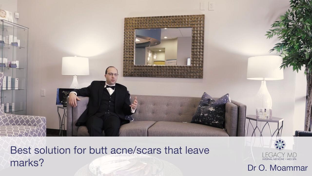 Watch as Dr. Moammar of Legacy MD Frisco answers the question: Best solution for butt acne scars that leave marks?