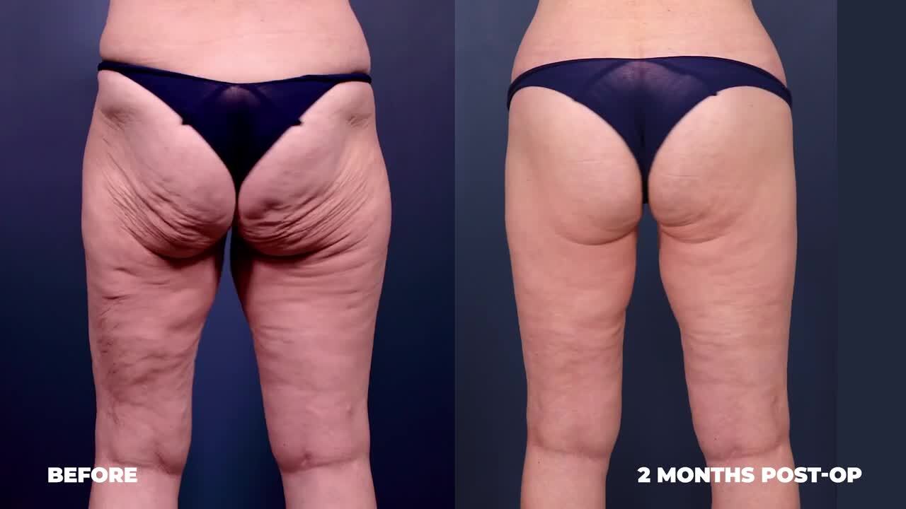 2 months after her Bikini Body Lift™, this 62-year-old shows smoother, firmer skin & a lifted contour. Following weight loss & a prior tummy tuck, the procedure corrected severe laxity & cellulite with a low, discreet scar & transformative results.