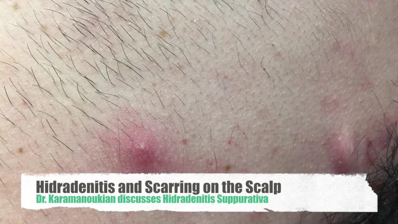 Hidradenitis Suppurativa of the Scalp and Occiput characterized by recurrent pustules, abscesses, and folliculitis.