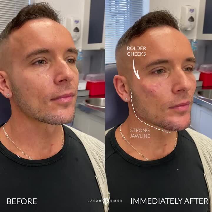 Our patient came to us because he desired a stronger facial profile, with cheek bones that could stop bullets, and a jawline that could cut steel. Using Radiesse filler, we gave him just that. He wanted the best - and he got it!