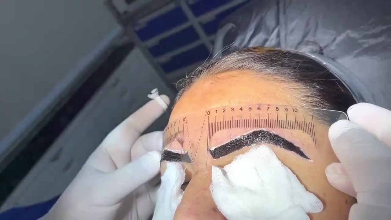 A semi-permanent technique for enhancing the appearance of the eyebrows, in which pigment is scratched into the skin in fine, short strokes resembling hair, using a hand tool with a blade formed of tiny needles.
