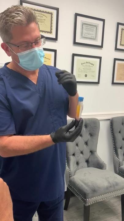 Dr Scheinblum explaining platelet rich plasma with his patient. Look at all of the growth factors, which will be injected into patients scalp .