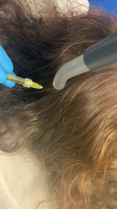 We are thrilled for our patient who has completed 4 Prp hair treatments and has significantly improved the density and thickness of her hair as can be seen in these before and after pictures .