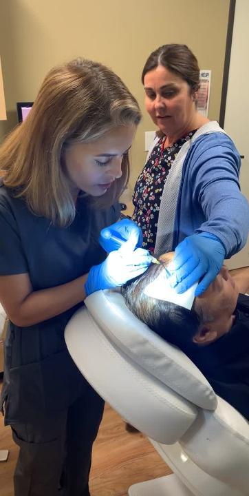 After drawing and spinning the blood in a specialized Eclipse tube, the plasma and platelets with their growth factors are injected into the scalp.