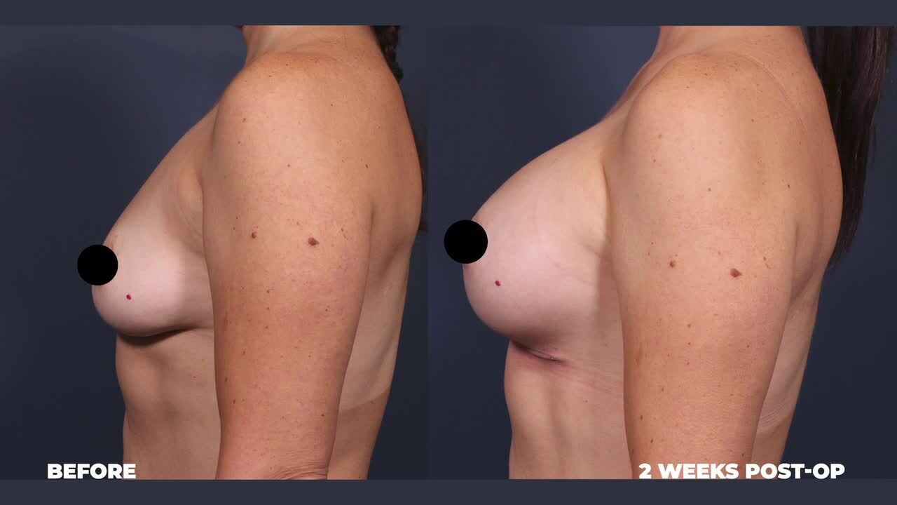 10 weeks after rapid recovery breast augmentation, this 40-year-old mom of three shows soft, natural results with 420cc silicone implants. Her incisions healed beautifully, early fullness resolved, and she returned to normal activities within days.