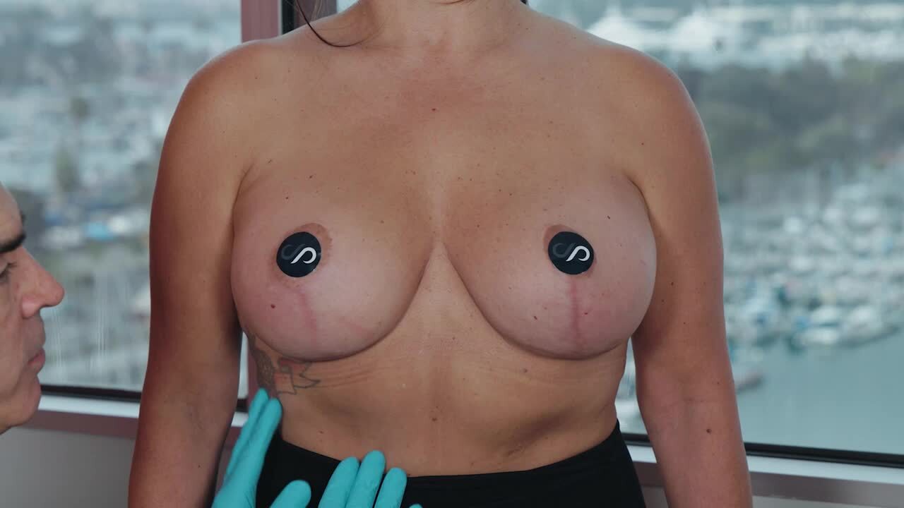 At 3 months post-op, our patient has restored upper pole fullness after a prior reduction. Using 305 cc cohesive gel implants, she achieved a natural, balanced result and returned to normal activities quickly with our rapid recovery approach.