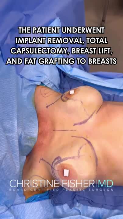 Dr. Fisher explains a cosmetic reconstruction case involving breast implant removal (explant) with total capsulectomy, breast lift, and fat grafting. (7 weeks post-op results)