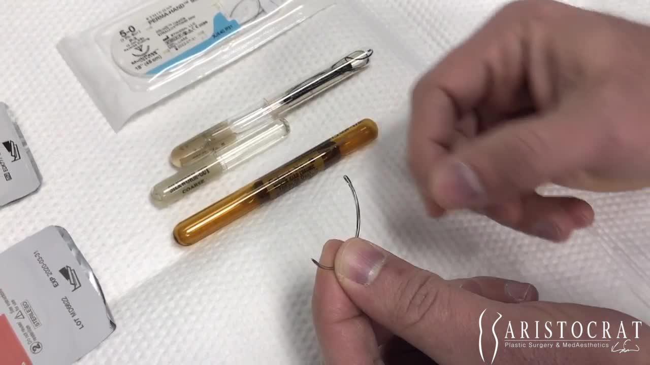 Dr. Kevin Tehrani describing surgical sutures through the years. Sutures in the past were sterilized in alcohol, a nurse would break the glass & manually thread it. Now sutures are individually peel packed, they are absorbable & antibacterial coated.