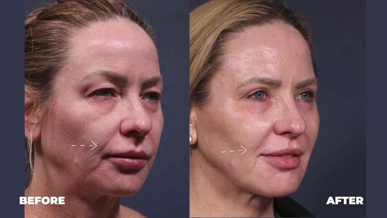 6 weeks after upper eyelid surgery & fractional CO? resurfacing, her skin looks smoother with smaller pores and a healthy glow. The laser improved brow, nose, and cheek texture, while eyelid surgery refreshed the eye area for natural rejuvenation.